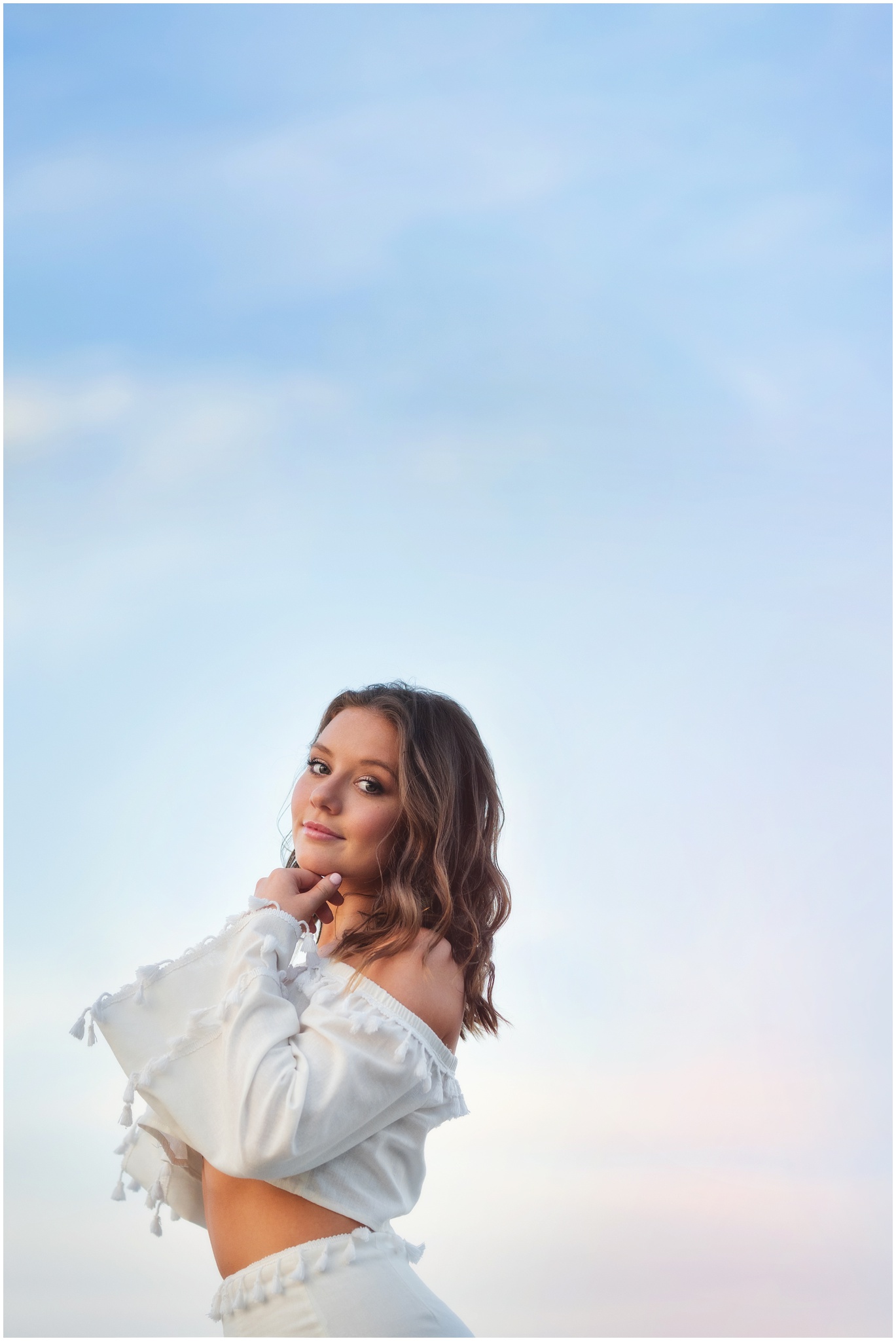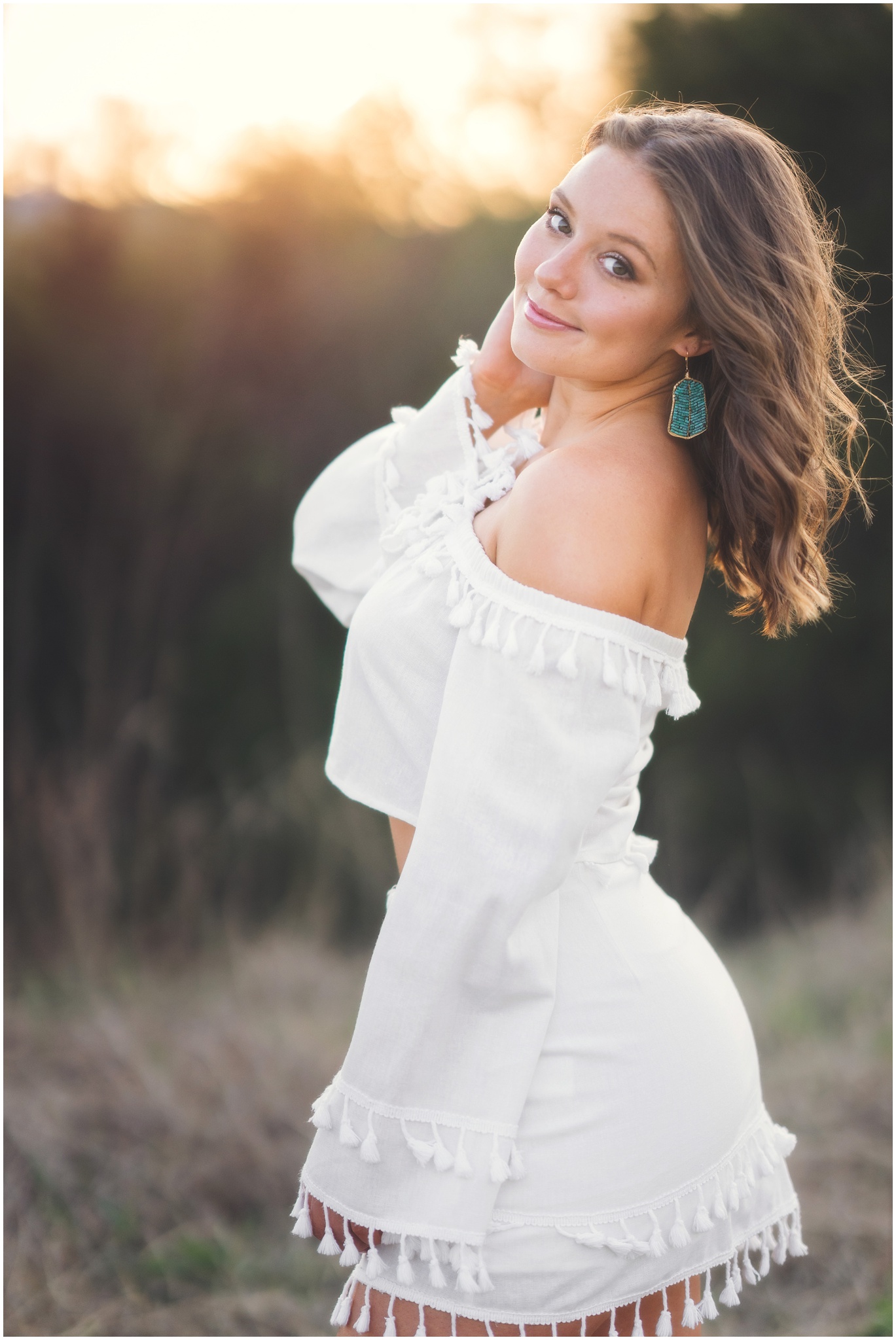 girl going to Oklahoma - to be a Sooner!girl in white dress at sunset with skygirl in white dress at sunset with sky