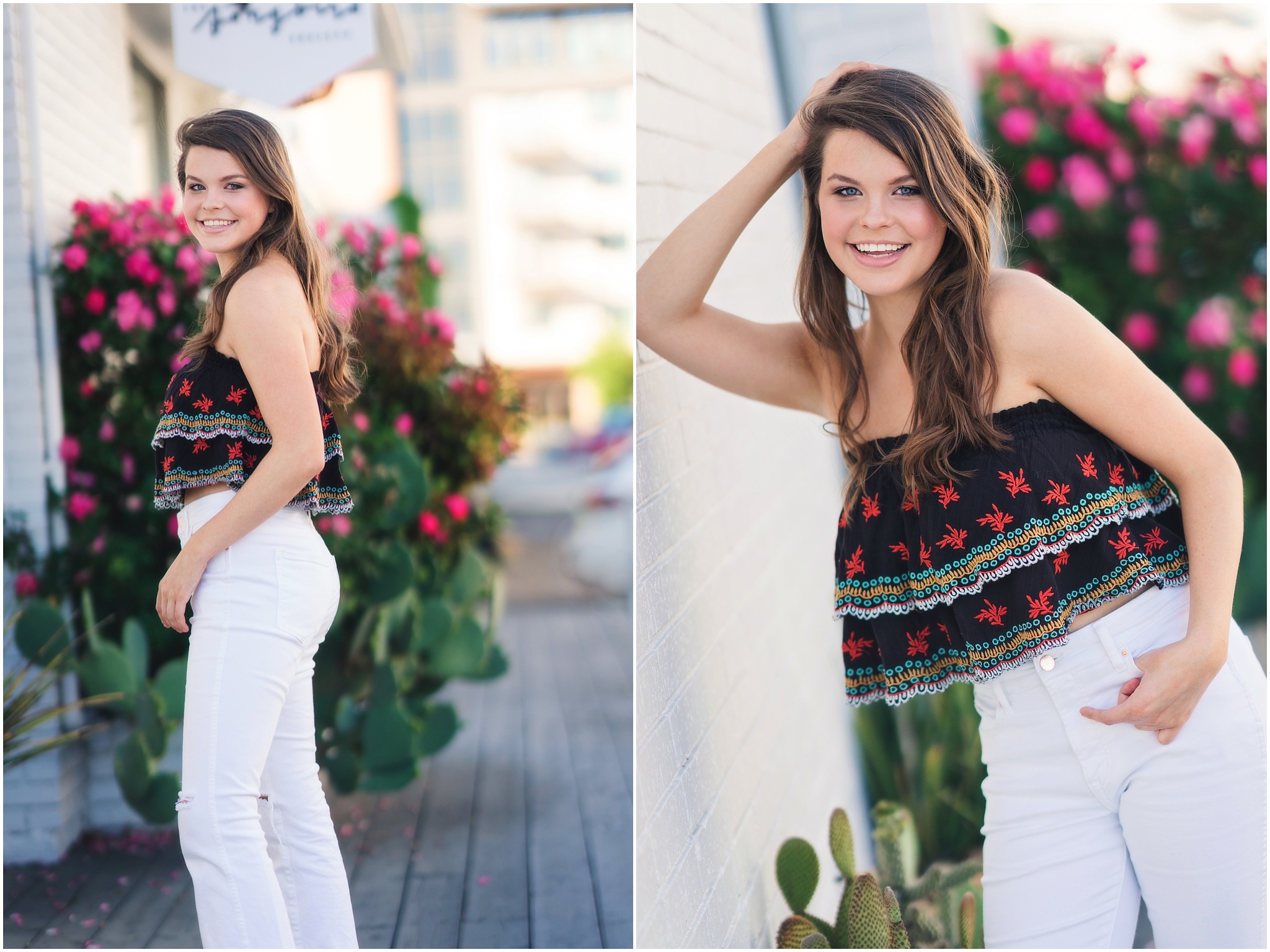 brunette in urban dallas settingbrunette in red top at sunsetbrunette girl in red top and white jeans against ivy wallbrunette in white dress in downtown dallasbrunette in teal strapless dress outside of winspear dallas