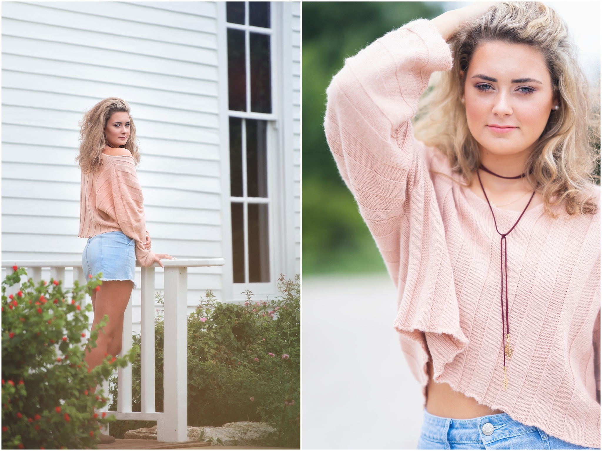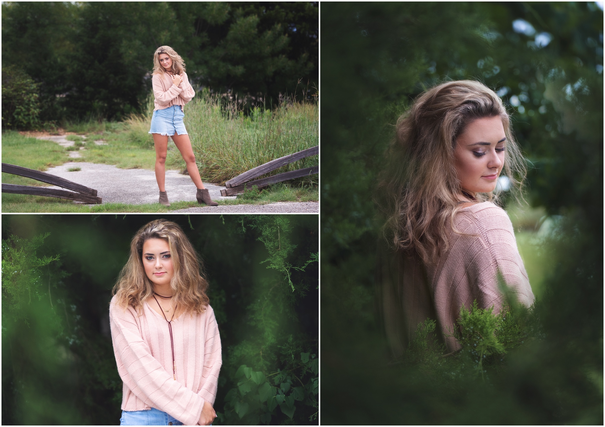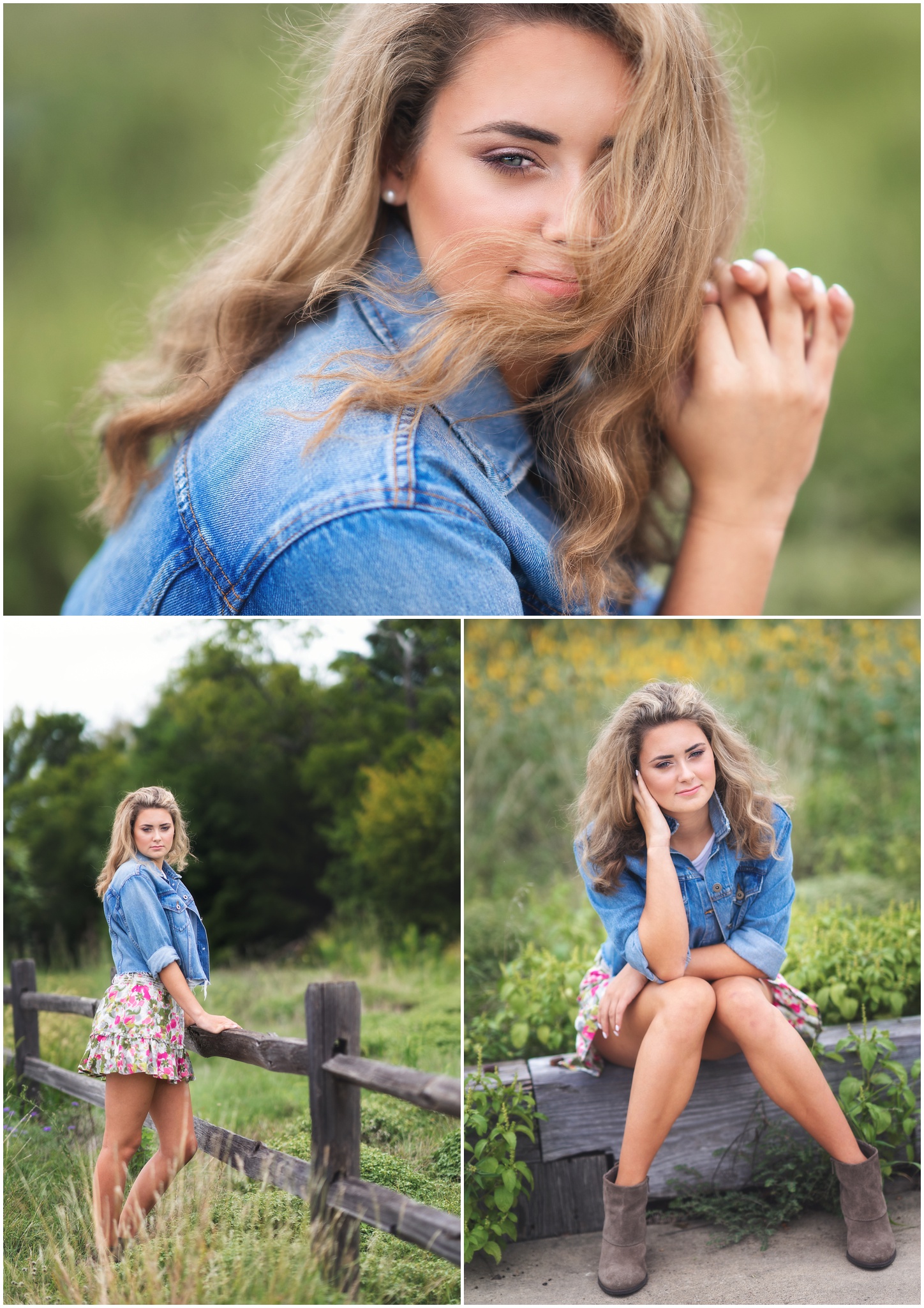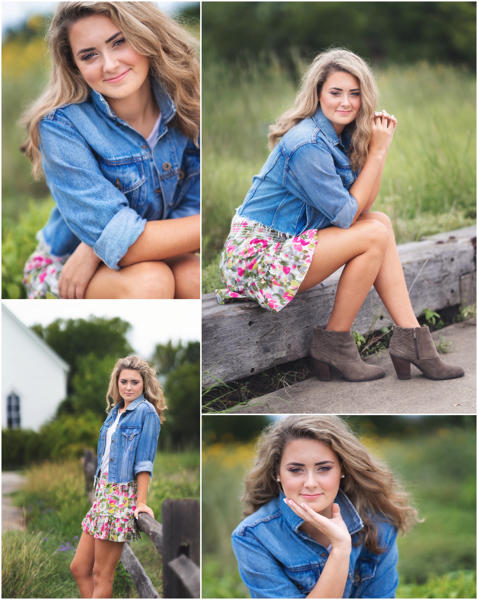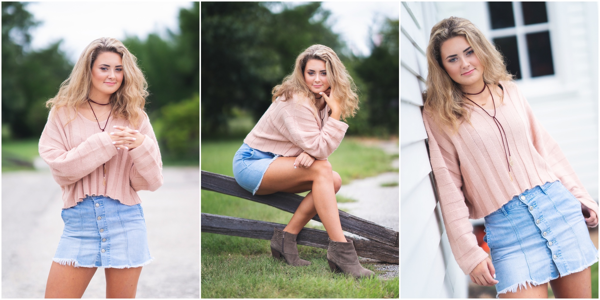 girl with windswept hair in denim jacketgirl with denim jacket sittinggirl leaning over fencegirl sitting and walking down old farm roadgirl looking over the shouldergirl with hands by face in rompergirl in denim skirtgirl in pink sweater and denim skirt in naturegirl by old church in pink sweater and denim skirt